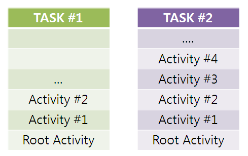 - Task는 어플리케이션에서 실행되는 Activity를 보관하고 관리 - Stack 형태의 연속된 Activity로 이루어진다.