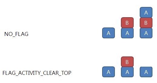 켜지는 방법을 지시하는 경우 ➡ IntentFlag