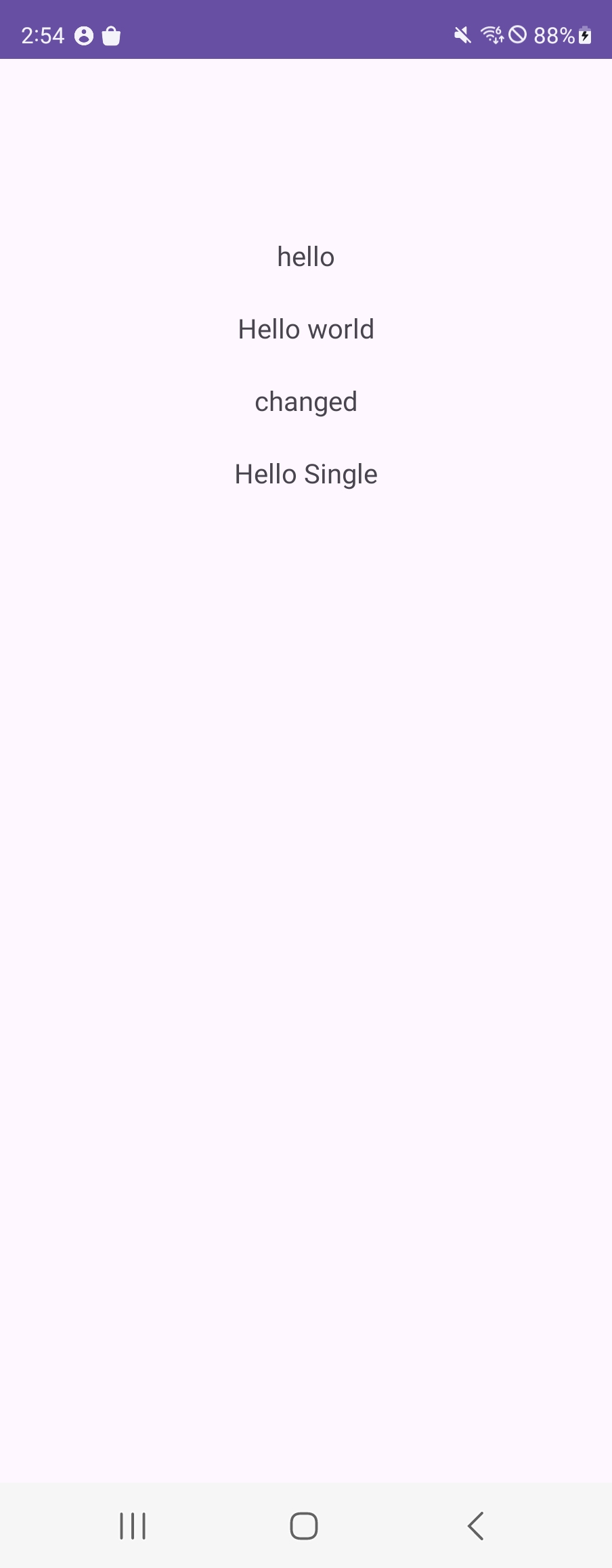 private fun example4(){ val source: Observable<String> = Observable.just("Hello Single") Single.fromObservable(source) .subscribe { o -> testTextView4?.text = o } .dispose() }스크린샷 :