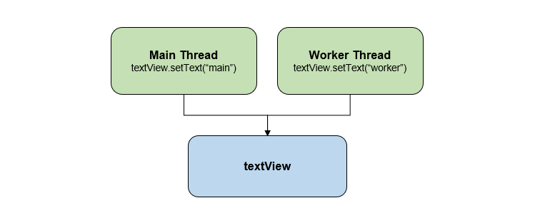 안드로이드에서는 UI 스레드나 main thread를 제외한 다른 thread에서는 UI를 바로 업데이트하는 것을 막아 두었다.