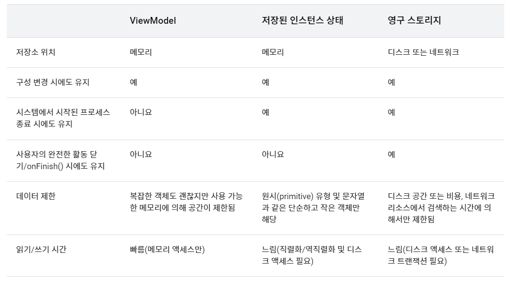 ViewModel이 완벽한 것은 아니다. 거의 일어나지 않는 일이지만 프로세스 종료시에는 데이터를 유지 못한다.