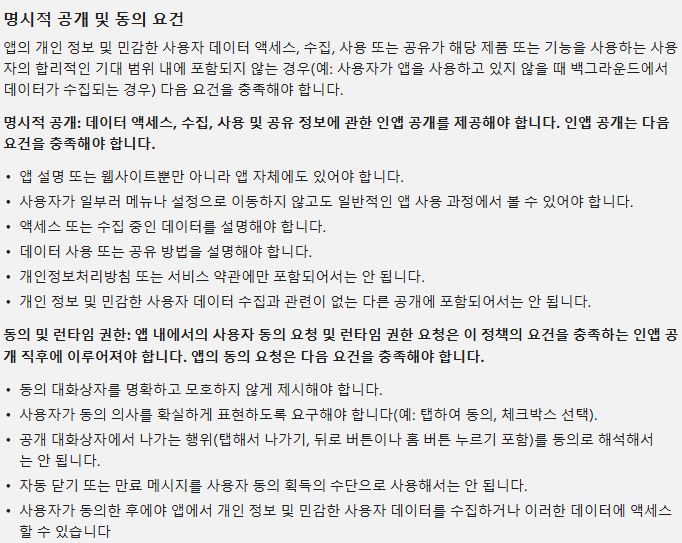 - (이 부분은 꼭 추가해야 하는지 정확히 모르겠다. 추측해보건데 보지 않는 것 같다. 왜냐하면 앱을 올린지 1시간정도만에 승인이 됐는데 과연 웹까지 가서 봤을지 의문이다. 개인정보처리방침 자체는 있어야 하지만 이 내용이 거기에 같이 올라가야 하는지가 의문이라는 것이다. 어쩌피 이 보안 SDK를 다른 앱에도 추가해서 올려야 하기 때문에 이 부분은 다른 앱 올릴때 개인정보처리방침에 추가 없이 한번 올려봐야겠다.)