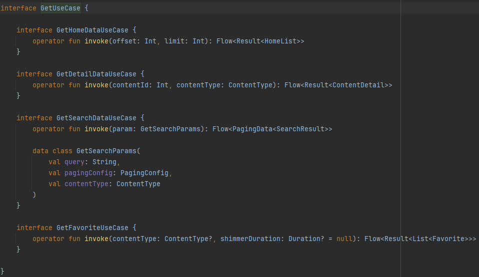 GetUseCase.GetDetailDataUseCase(contentId,contentType)operator와 invoke 조합을 사용하는 주요 장점은 코드의 가독성과 사용성을 개선하고, 객체지향적 디자인과 함수형 스타일을 더 자연스럽게 조화시키는 데 있다고 한다.