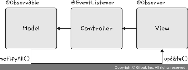 예를 들어 주체라고 볼 수 있는 모델(model)에서 변경 사항이 생겨 update() 메서드로 옵저버인 뷰에 알려주고 이를 기반으로 컨트롤러(controller) 등이 작동하는 것이다.