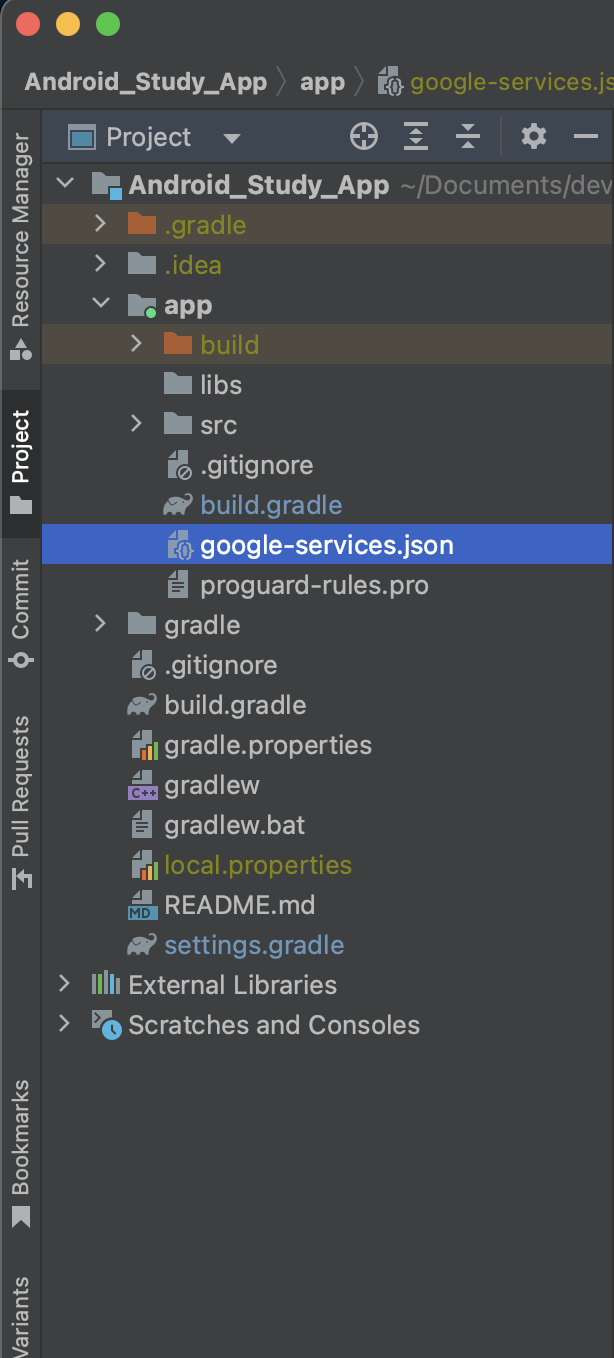 e) google-service.json 갱신 - (d)에서 '프로젝트 설정'에 들어가서 아래로 가면 다운받을수 있다