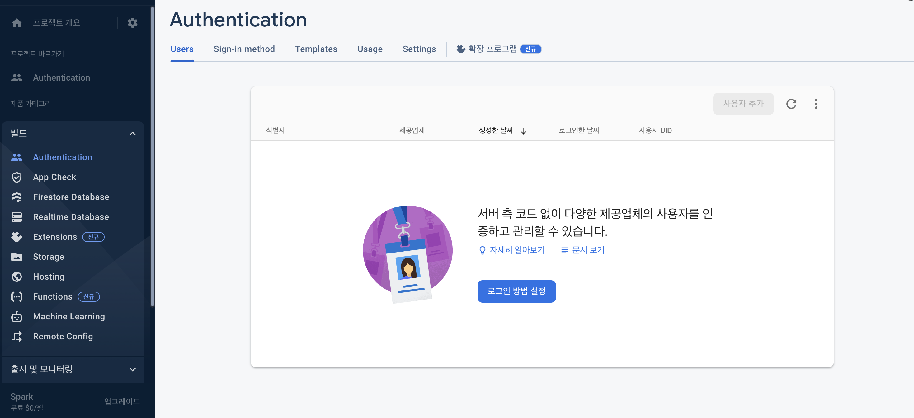 a) 먼저 Firebase에 있는 Authentication에 들어가서 생성해준다.