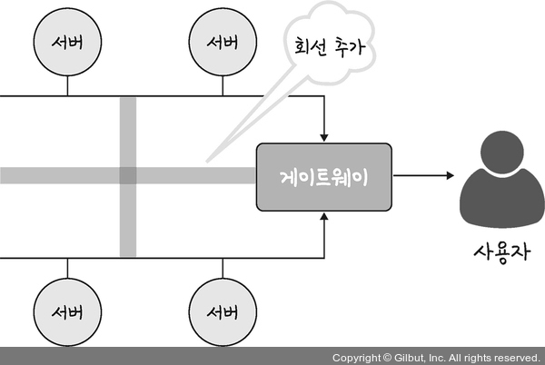예를 들어 앞의 그림처럼 서비스를 만들었는데, 병목 현상이 일어나서 사용자가 서비스를 이용할 때 지연 시간이 길게 발생하고 있다고 해봅시다. 관리자가 큰돌이 지연 시간을 짧게 만들기 위해 대역폭을 크게 설정했음에도 성능이 개선되지 않았습니다.
