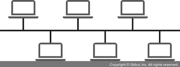 버스(bus) 토폴로지는 중앙 통신 회선 하나에 여러 개의 노드가 연결되어 공유하는 네트워크 구성을 말하며 근거리 통신망(LAN)에서 사용합니다.