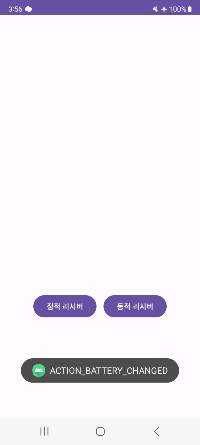 ACTION_POWER_DISCONNECTED : 배터리 안충전중?그리고 Broadcast Receiver는 정적 리시버(Static Receiver)와 동적 리시버(Dynamic Receiver)로 두 가지 형태로 나뉜다.