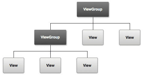 안드로이드 화면은 view와 viewgroup 구성되어 있다. 안드로이드 앱을 실행시켰을 때 화면에 보이는 모든 요소는 뷰(view)라고 볼 수 있다. View를 담아 화면에 적절히 배치하기 위해 필요한 것이 뷰그룹(viewgroup)입니다.일반적으로 뷰 객체를 위젯, 뷰그룹 객체는 레이아웃이라고 합니다.
