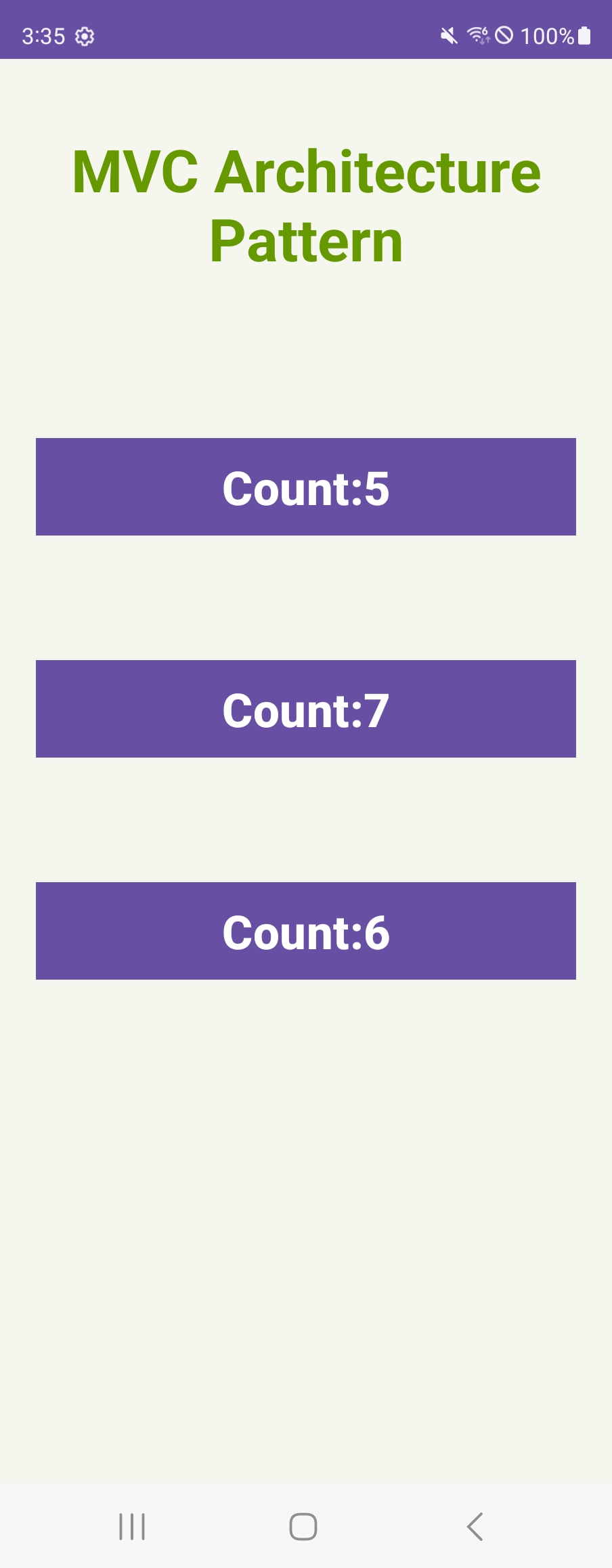 button1!!.text = String.format(getString(R.string.count2, myModel!!.getValueAtIndex(0)))- View에서 데이터 갱신을 할때 위에처럼 Model을 직접 참조한다. 그렇기 때문에 의존성이 생긴다.